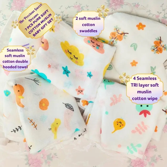 100% Pure Muslin Cotton – Soft, breathable, and hypoallergenic fabric ideal for newborns and sensitive skin.